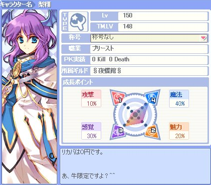 ↓牛ふぁみりぃ 銀ノ助(ぎんのすけ) 230台銀グラ トナカイさん。攻撃+幸運 晃夜(こーや) 180台黒マジェ ぱんだじゃないよ。攻撃極 橙。(だいだい) 190台金グラ めかんうし。攻撃+HP 雹嵐(ひょうらん) 170台青マジェ いんらんらん。幸運極 吟七夜(ぎんしちや) 190台赤マジェ よく特化と間違えられる。HP極 桃守(もも) 140台桃グラ 全身ぺんく。攻撃極 空渡(くうと) 200台青グラ プロカラーこないかなぁ。攻撃極 ~| ̄|廿(うし) 140台銀マジェ もーもー。攻撃+所持 砂陣(さじん)170台金マジェ モフモフ。攻撃+回避 メイン以外F鯖夢島で活動中。 キャラの詳細は「カテゴリ」の「キャラ紹介」からどーぞ^^ カレンダーカウンター最新記事(12/01)