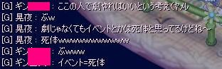 しゅばるつばると牛ふぁみりぃ+αのとりすた放浪記PAGE | 121 120 119 118 117 116 115 114 113 112 111 | ADMIN | WRITE 2008.02.21 Thu 15:31:33 無題(たまには題名が思いつかないときもある↑どう見てもこれはウソですね☆ 今週の火曜のメンテ後から設置されたはずなのに、なぜこんなことになっているのでしょうか? 答えは簡単。 多分かなり短い期間のバグですが、1の位がスロットになっていました! スロット形式でいつか止まるのかと思いきや、回りっぱなしでしたww ついでに、3周年近づいてきましたねw どんなのが来るかはイマイチよく分かりませんが、少しわくわく^^ 昨日はギルメンが二人しかいなくて暇暇言ってたら、もう一人に誘われました え、何の集まり? ――知りません。 なんとなくそのままうだうだ・・・ 龍さん二人がいなくなって、たまごが代役。 プチッと踏まれました( なぜかロビンを囲み始める。 会話がなくなって、みんなで「何する?」と言い出し、 PTクエをやることに。 みんな70↑なのにピラミッドで。 まあ途中のssなんてないですよ。 クエ始まるとそれまで以上にみんな無言(ぁ さあ、テラに報告だ・・・・・・ 終了直前で崩壊。 そして、何気に誤字発見。 あ、おまけ? 劇はしないけど、イベントは死体と思う。 PR TrackbacksTRACKBACK URL : CommentsComment Form |