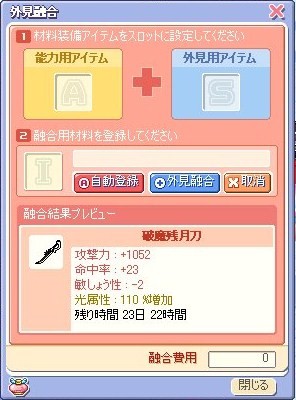 部屋が暖まらない上に、昼飯が食えない、そして、CDも聞けないorz こんにちは、ちょいと帰宅しましたー でも、今日また出かけますw 次帰ってくるのは・・・・・・・・・・・・・ブチッ エアコンとポットだけでも落ちたorz 次に帰ってくるのは1月2日になりそうです でも、1月1日に年賀状をしかけたので自動で記事がupされる・・・・・はず。 イベの掘りは無事に終わりました><b これから残りのモンクエをやる予定です そいや、外見融合をちょいやってみました 今回のスノーボックスの剣の見た目がだいぶ気に入ったので、例のLv11剣をくっつけました このシステムは結構好評みたいですねー 非課金Gvとか大変そうですが;; おまけ 某ゲームと混ざった模様。 元ネタが分かる人はりぜると気が合いそうです |